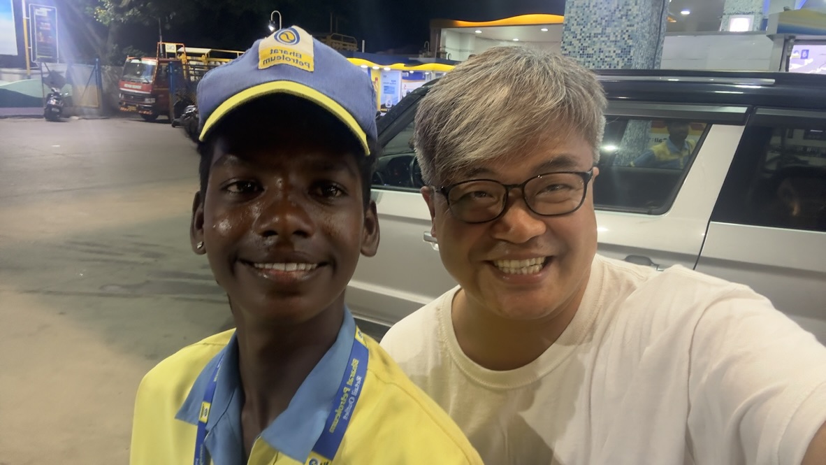 공항으로 향하는 길, 주유소 직원과 함께